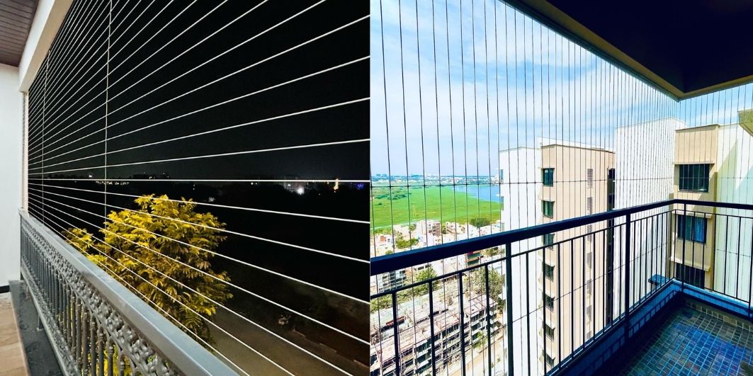 Our child-safe invisible grills are designed with a gap of just 2 inches between the wires to prevent children from slipping through or inserting their heads or hands. These grills are ideal for windows, French doors, and balconies, providing a safe environment for toddlers and young children to move around freely without the fear of accidental falls. Plus, the rust-resistant and weatherproof materials make them perfect for Hyderabad’s varying climate conditions.